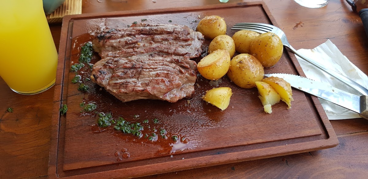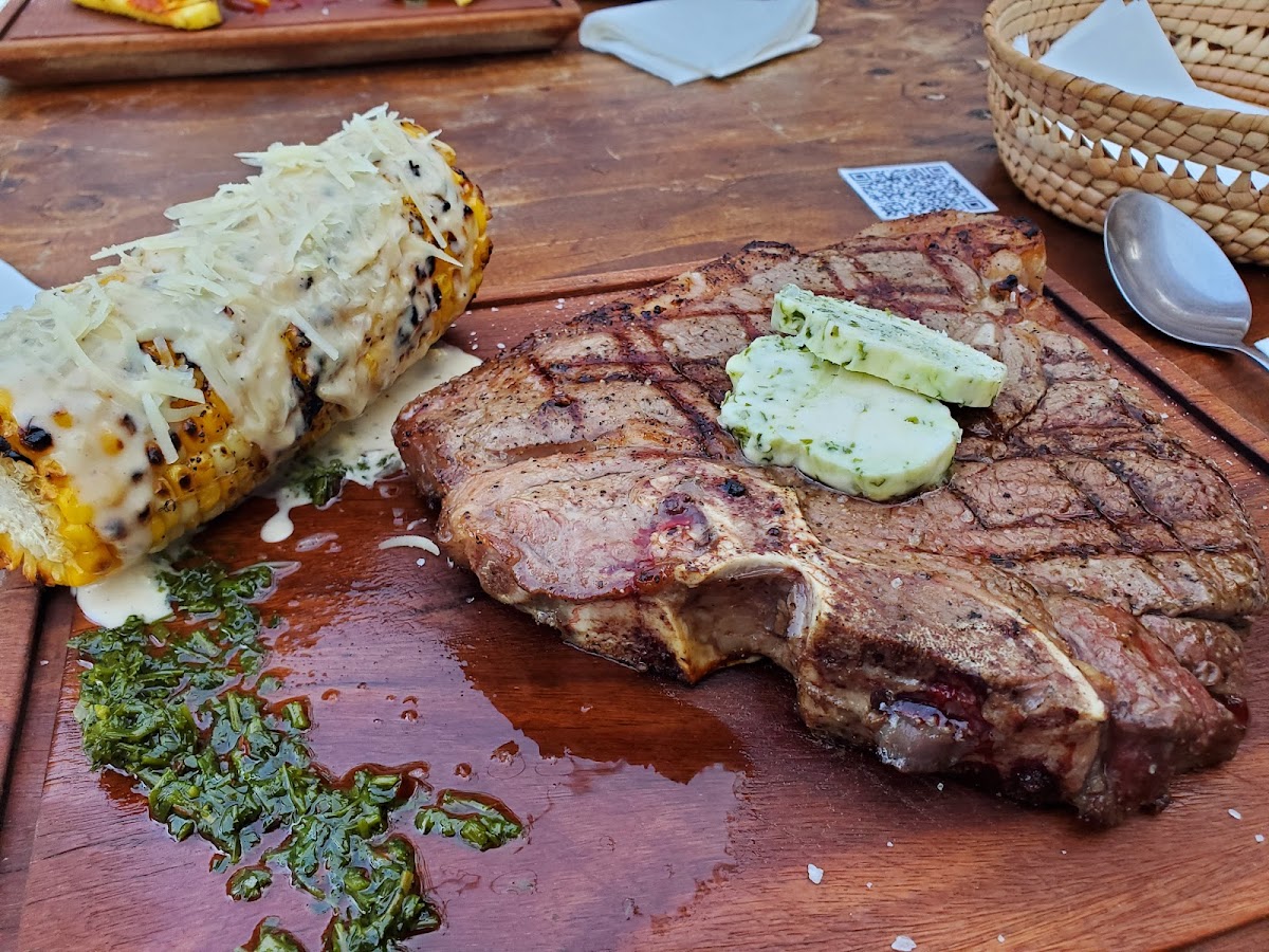 Great service, setting, and amazing steaks! We tried all 3 steaks they had, the cowboy, ribeye, and skirt steak. All are cooked to perfection on the grill. The vegetables were also very tasty. Definitely worth the visit, an underrated steakhouse in Cabo. Probably one of the best given the price point and quality of food!